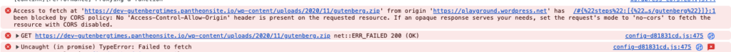 Before I could test it and make it available to users, I need to overcome a server-related hurdle. Because the plugin’s zip file was called from outside its domain, it registered a CORS violation.